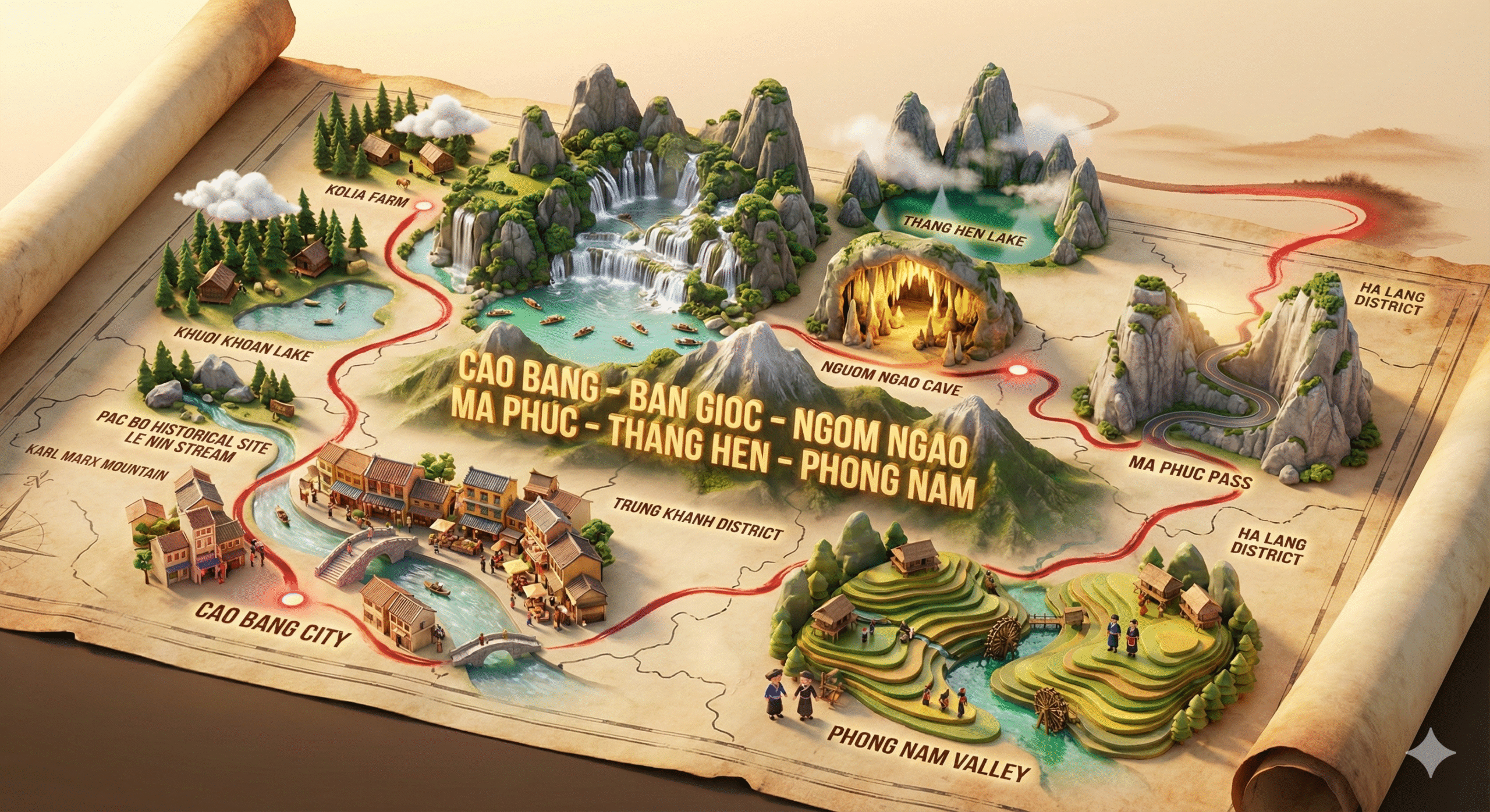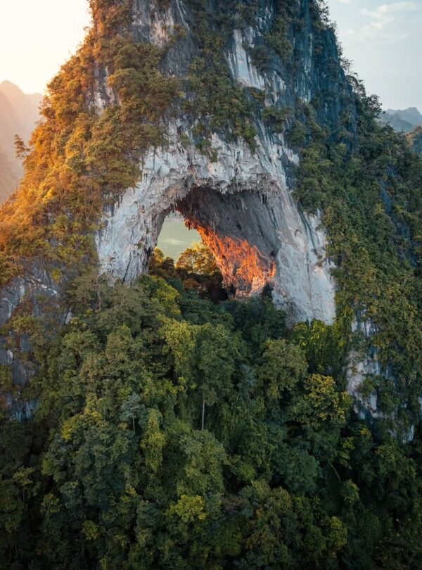 Day-2 fly-cam over Ban Gioc Waterfall, explore Ngườm Ngao Cave, visit Truc Lam Ban Gioc Pagoda, then sunset glamping & chef BBQ.